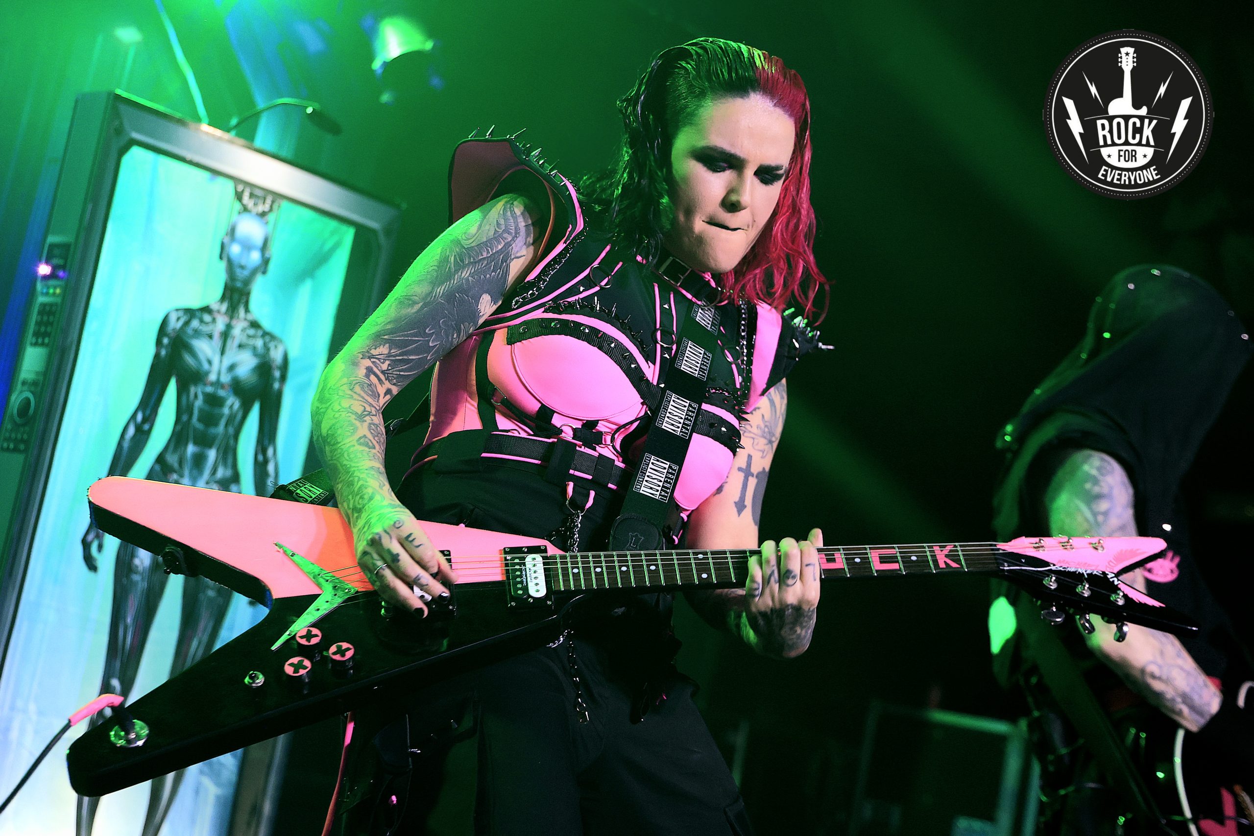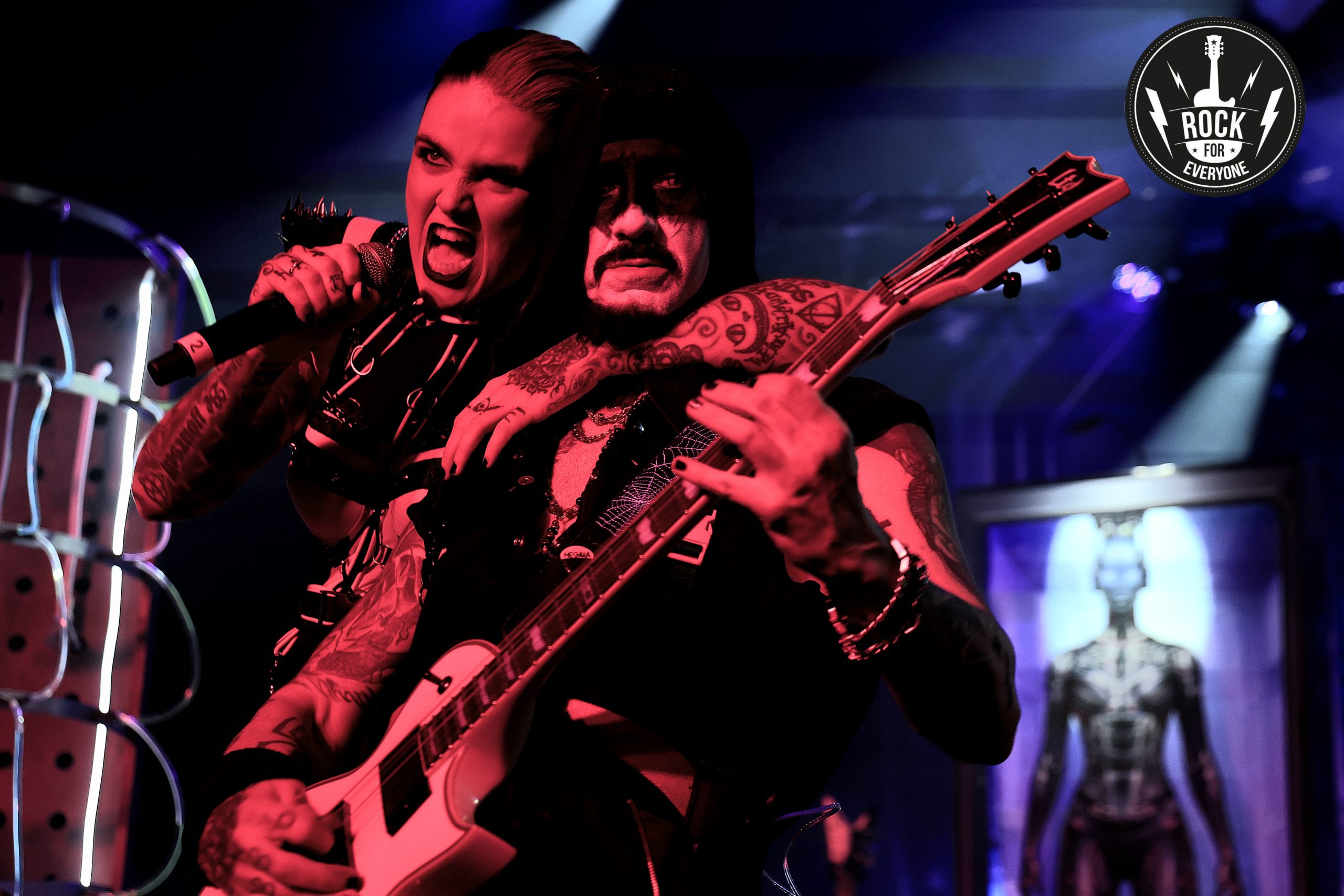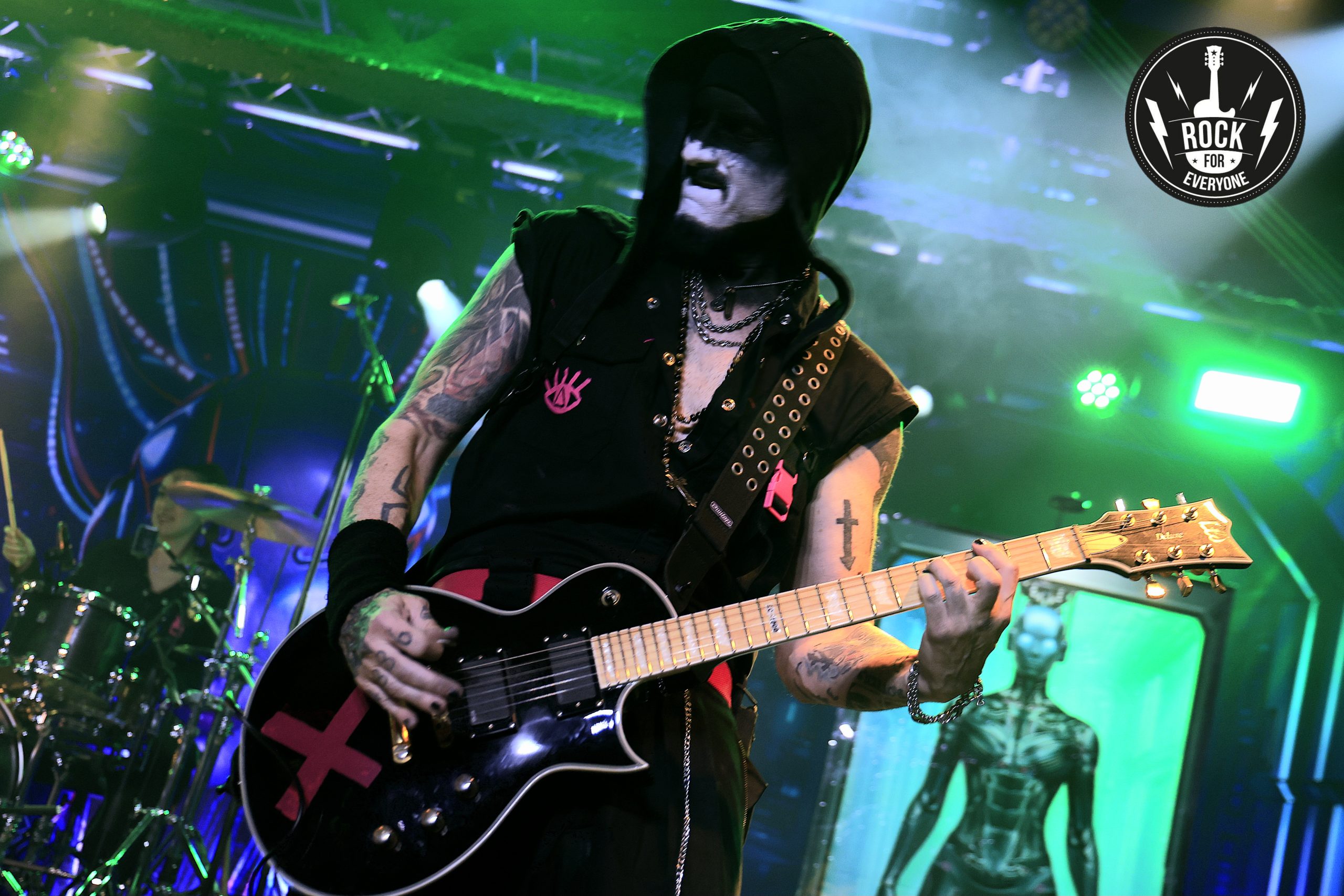 Llegó la hora de las brujas con «Hocus Pocus» y una nueva performance entre coreografías y vestuarios de Halloween que tan bien representan lo que es Megara. Una de esas canciones que sus seguidores no disfrutan, viven. Y tras ella nos sumergimos en el «Vértigo» que imprime Ra Tache a la batería, perfectamente arropada por el contundente e hipnótico bajo de Dim, su último y gran fichaje, completando un cuarteto que en directo funciona como una máquina perfectamente engrasada.